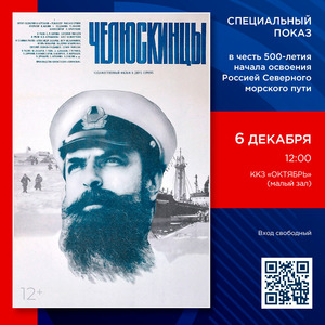 ККЗ «Октябрь» приглашает на бесплатный показ художественного фильма «Челюскинцы». Фильм Михаила Ершова основан на реальных событиях арктической экспедиции челюскинцев. 10 августа 1933 года из Мурманска вышел ледокольный пароход «Челюскин». Цель похода — освоение трассы Северного морского пути и научные наблюдения в Северном Ледовитом океане.