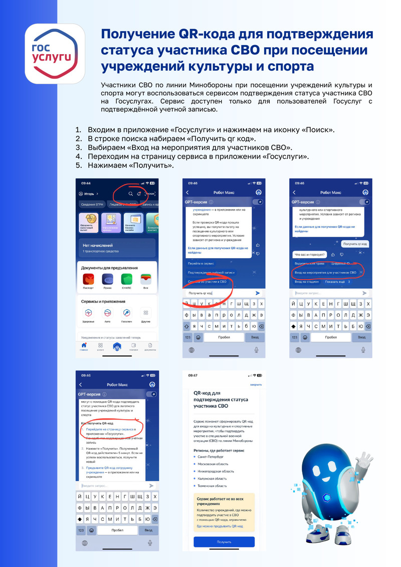 Получение QR-кода для подтверждения статуса участника СВО при посещении учреждений культуры и спорта