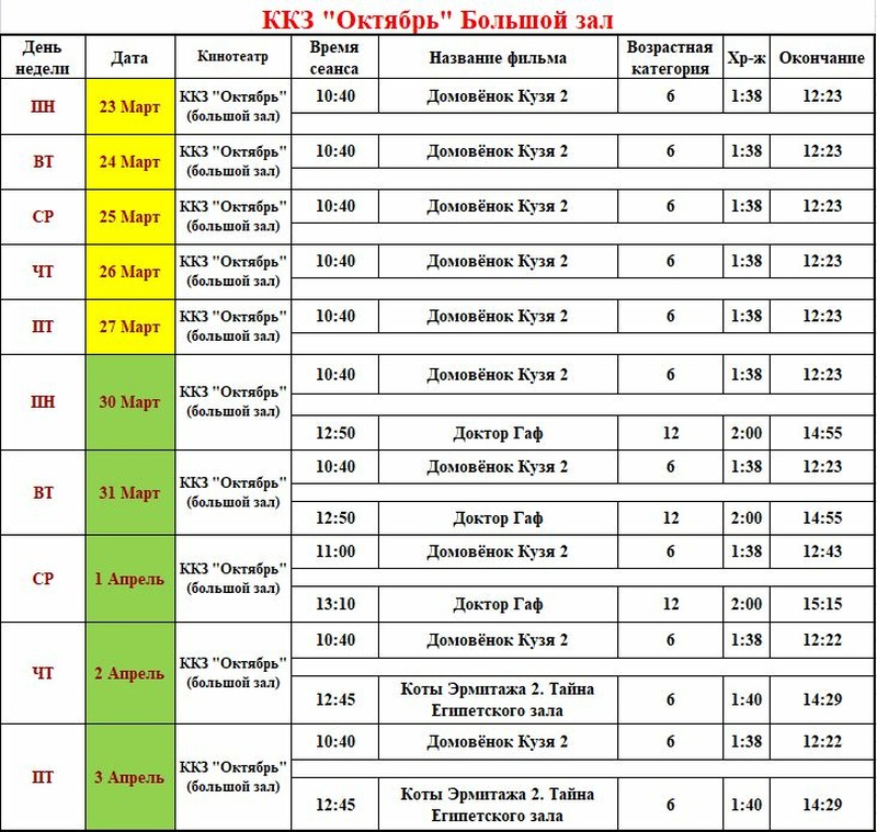 С 23 марта по 3 апреля зрителей весенних киноканикул ждут: