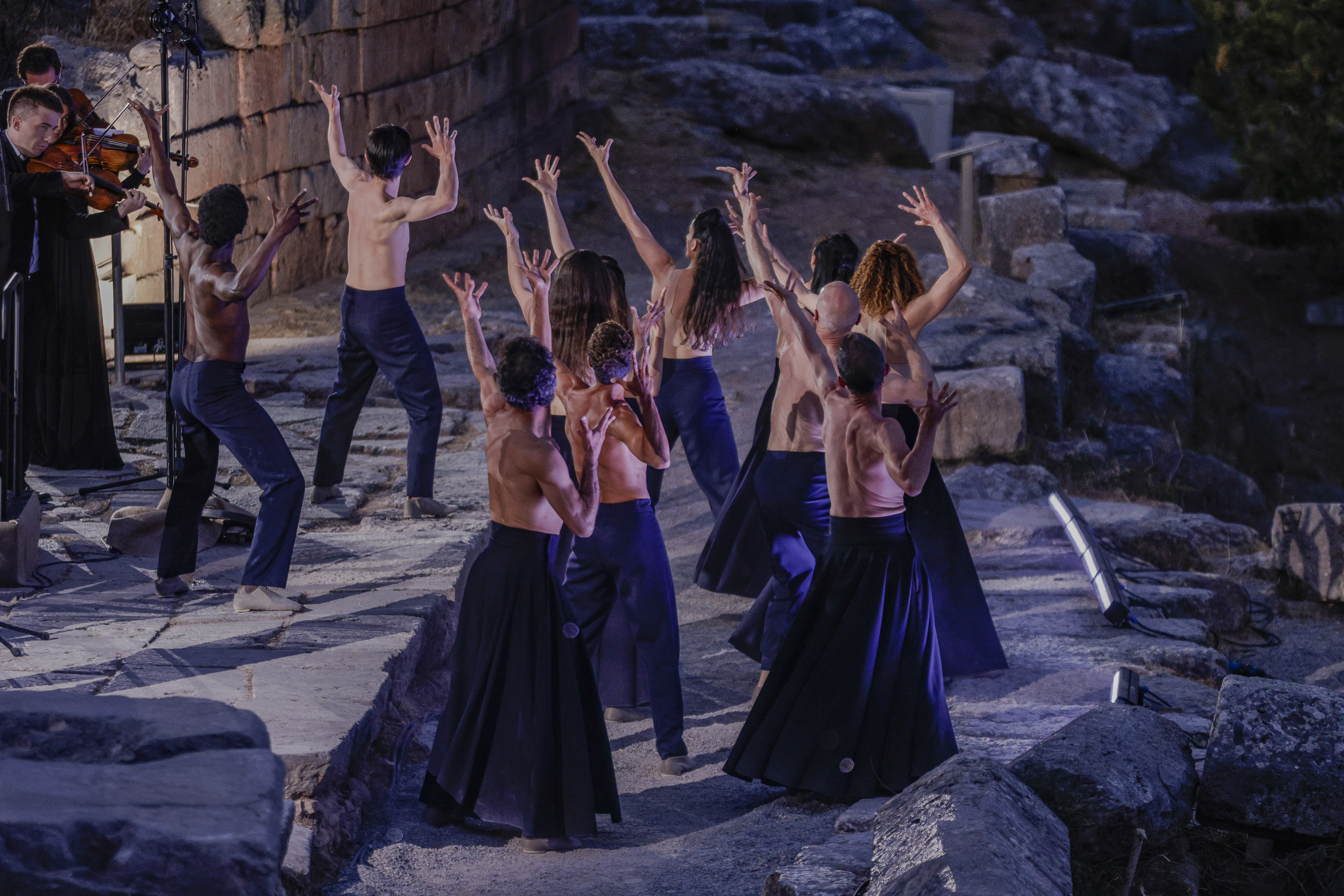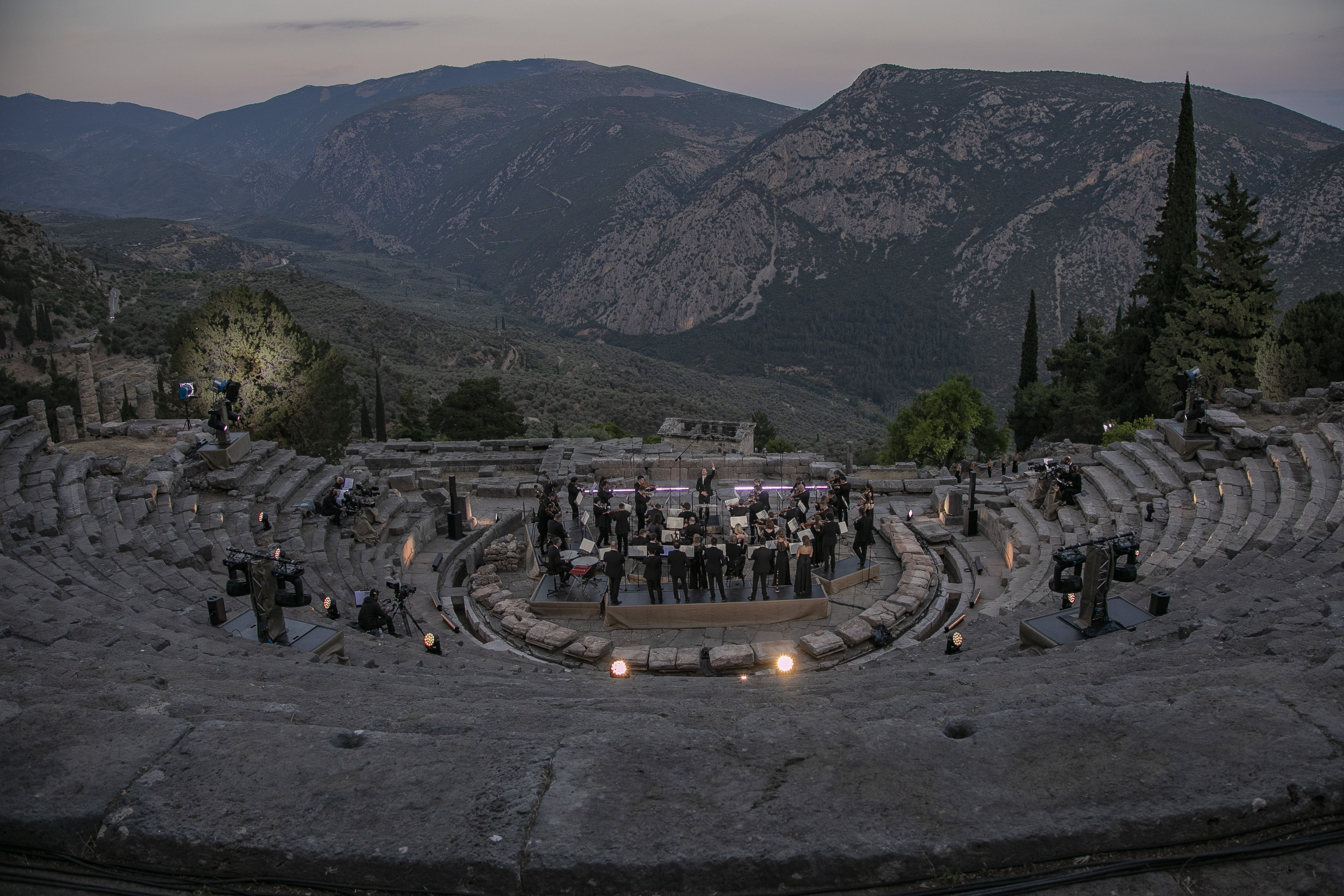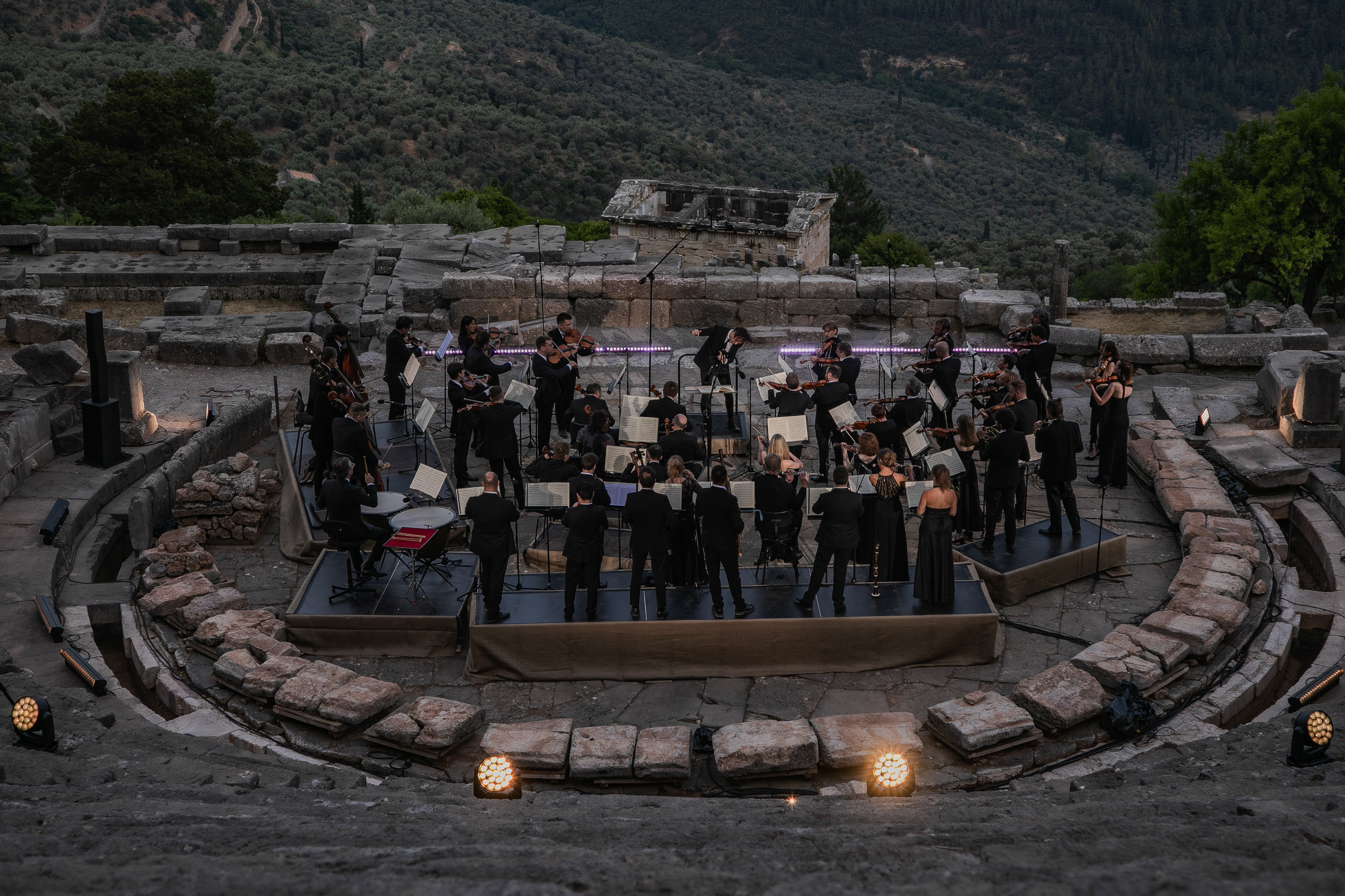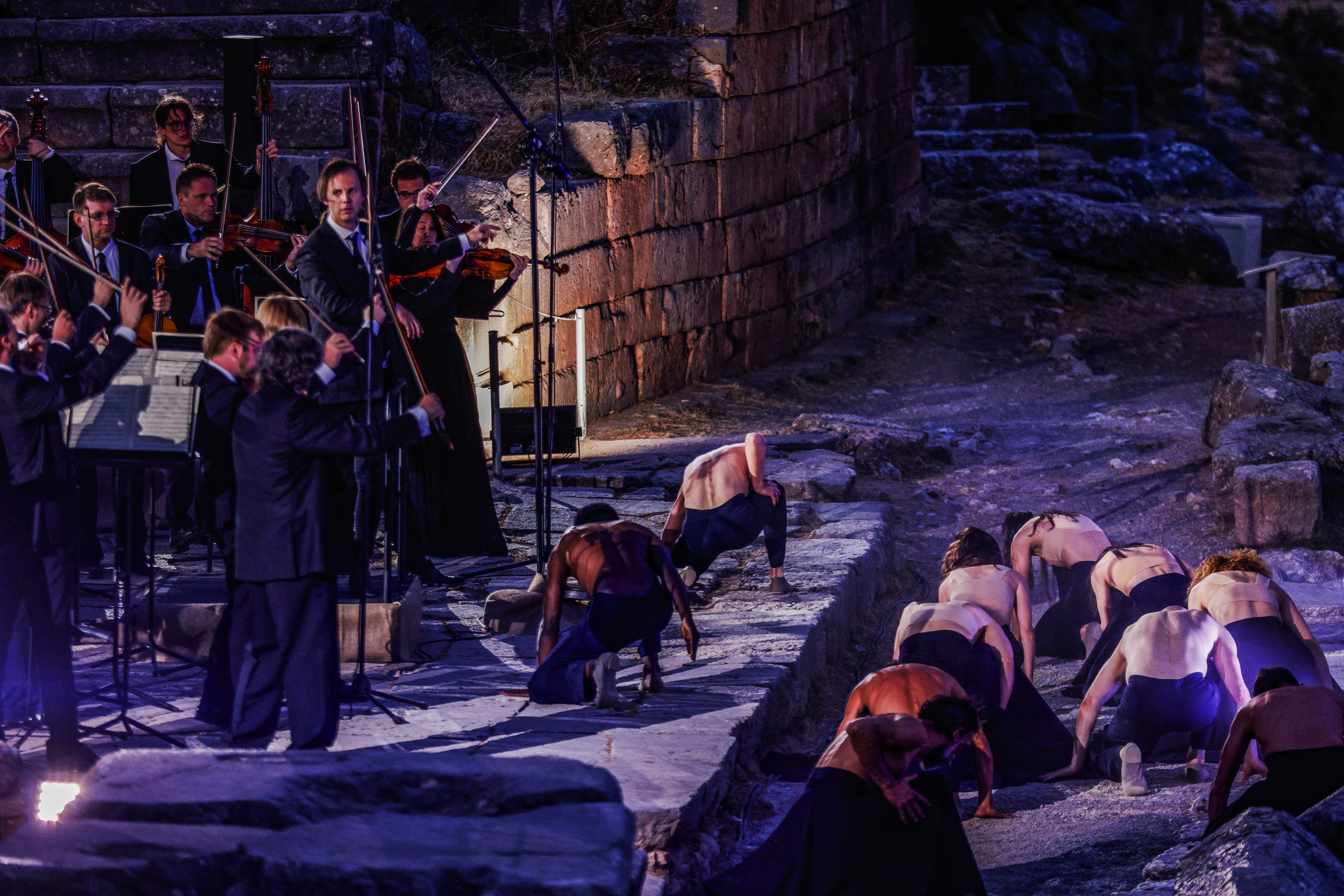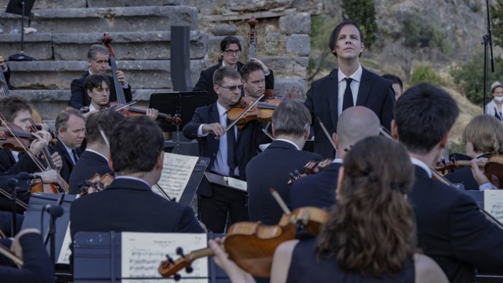 Параллели между Седьмой симфонией Бетховена и античной архитектурой в эксперименте оркестра musicAeterna и танцевальной труппы Саши Вальц. В древнем дельфийском амфитеатре, на фоне руин храма Аполлона оркестр musicAeterna под управлением Теодора Курентзиса исполняет Седьмую симфонию Людвига ван Бетховена. Хореографическая труппа Саши Вальц создаёт пластический комментарий к этой музыке и этому пространству.Бетховен завершил Седьмую симфонию в 1812 году. Ромен Роллан писал о ней: «Симфония ля мажор — само чистосердечие, вольность, мощь. Это безумное расточительство могучих, нечеловеческих сил — расточительство веселья ради». Рихард Вагнер высоко оценивал эту симфонию и назвал её «апофеозом танца». Сочетание симфонии с танцем, несомненно, было бы вполне в духе великого мастера Gesamtkunstwerk — «единения искусств». «Курентзис проводит параллели между Симфонией № 7 и древней классической архитектурой. [...] musicAeterna исполняет её с образцовой чистотой и прозрачностью», — Deutschlandfunk«Хореография обращается с музыкой одновременно требовательно и нежно. Своевольная и вневременная, как сама интерпретация Курентзиса, она представляет собой гибрид между предельным вживлением в музыку и таким же предельным, даже игривым освобождением от неё», — musicAeterna