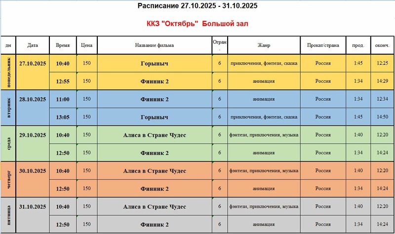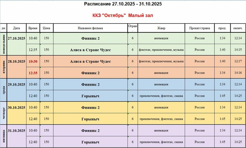 Осенние киноканикулы в ККЗ «Октябрь»