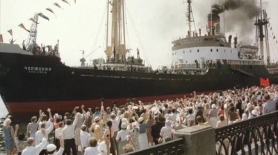 В феврале 1934 года «Челюскин» был раздавлен льдами и затонул в Чукотском море. Экипаж судна и участники научной экспедиции (всего 104 человека) высадились на дрейфующую льдину, на которой продержались два месяца.